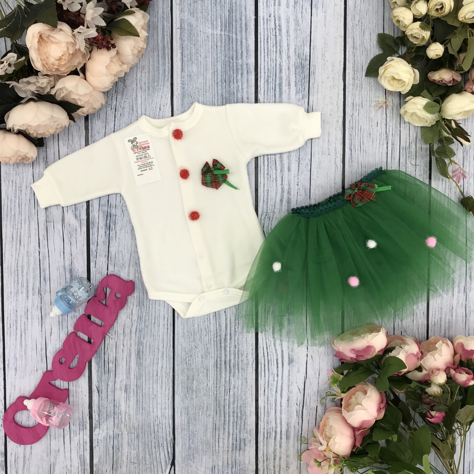Боди с юбкой из фатина, новогодние и красивые для вашей малышки