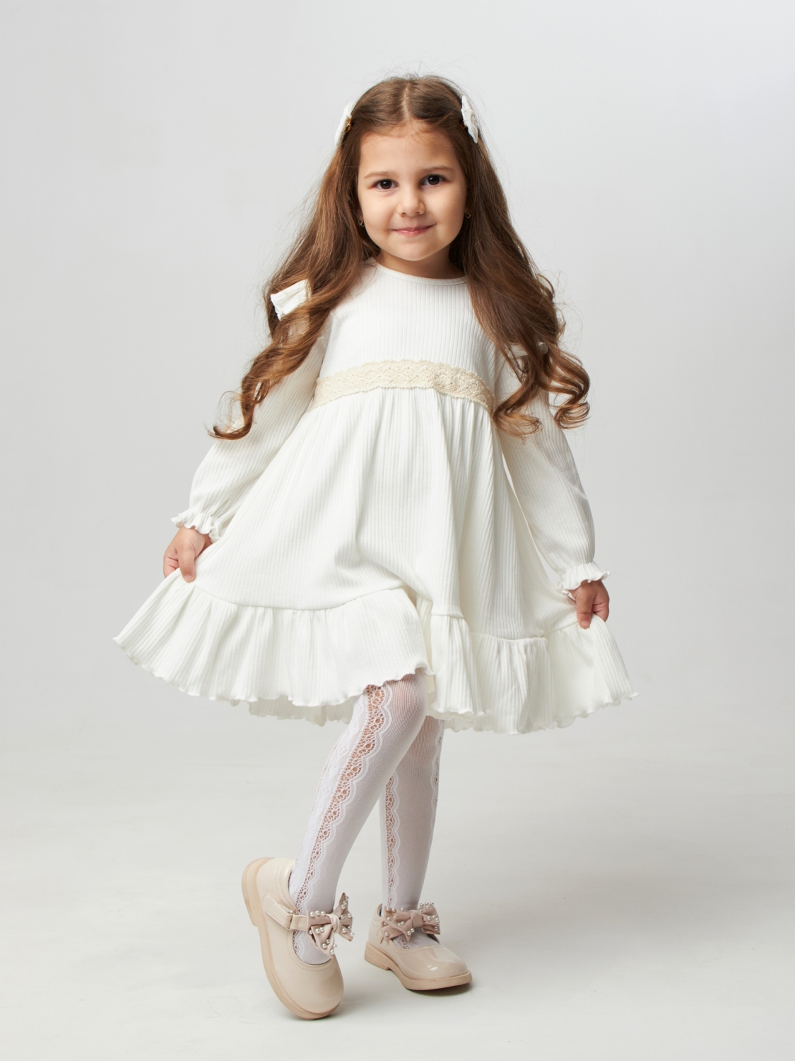 Теги: Платья детские из мулина оптом. 332. Платье детское из лапши, хлопок 100%, молочное, р. 74,80,86,92 цена,отзывы официальный сайт "Стеша Мурманск"